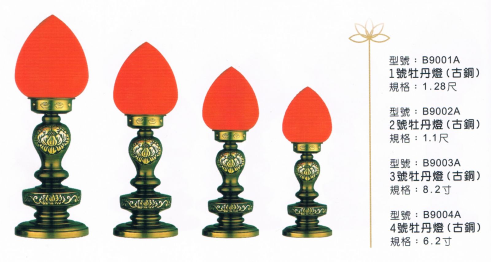 • 1號1牡丹燈(古銅)B9001A規格1.28尺